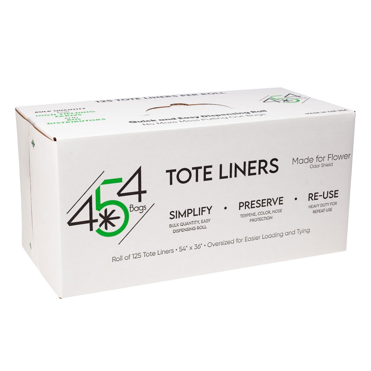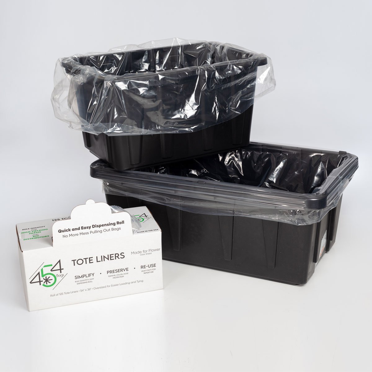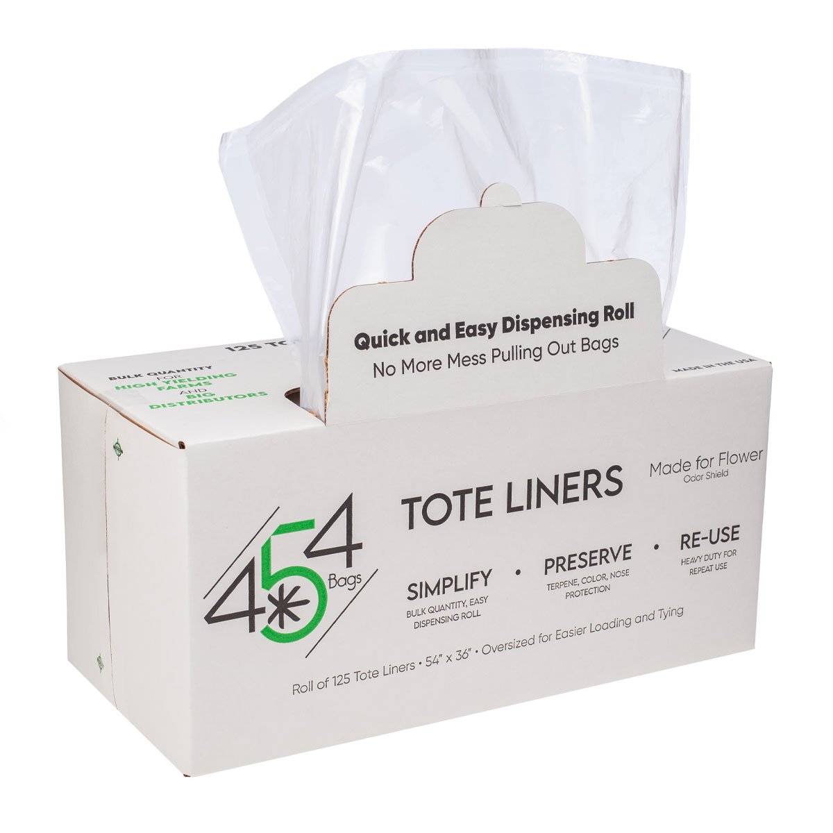 454 Bags’ Tote Liners use a plastic formulated for better terpene, color and nose preservation.