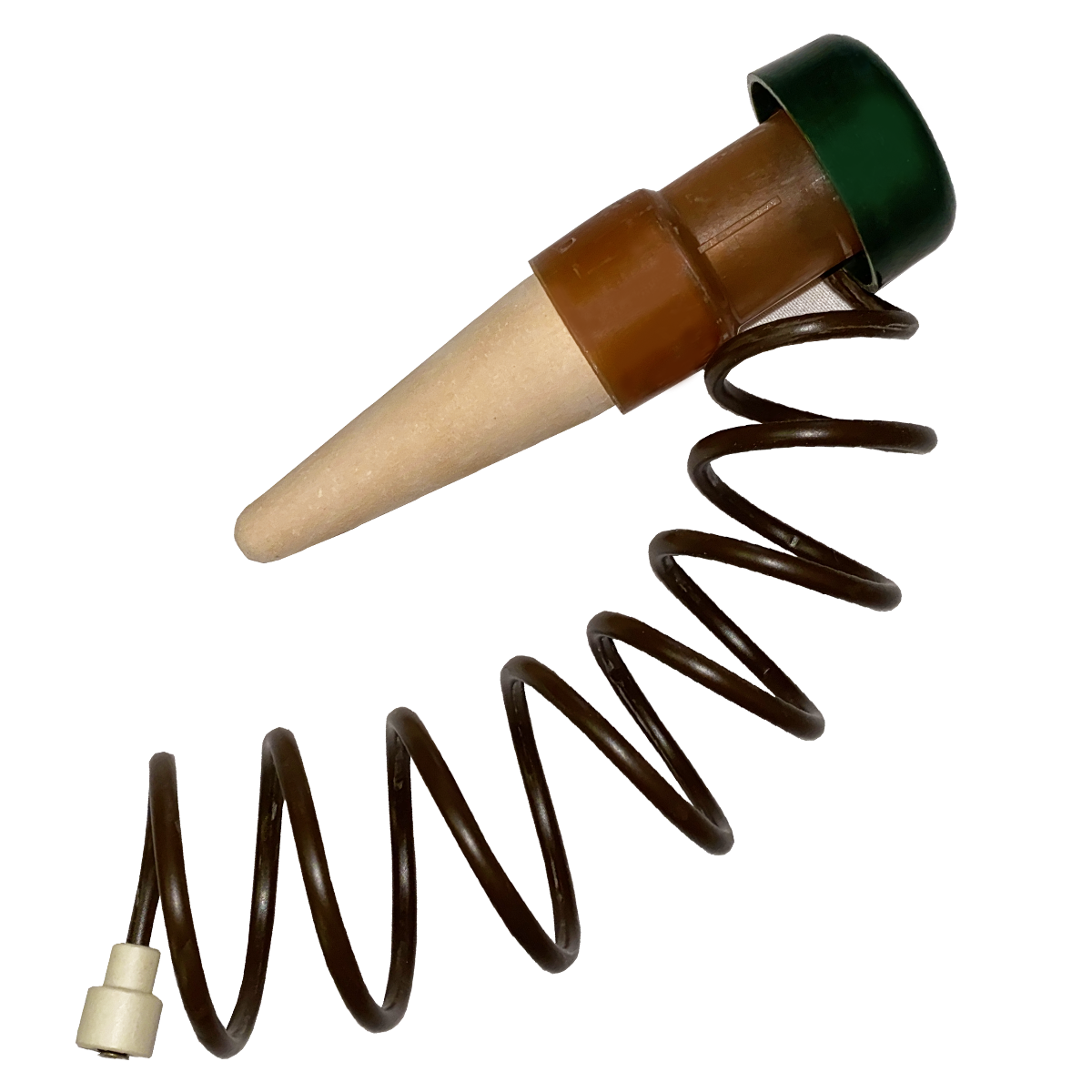 Push the ceramic completely into the soil leaving the green cap exposed.