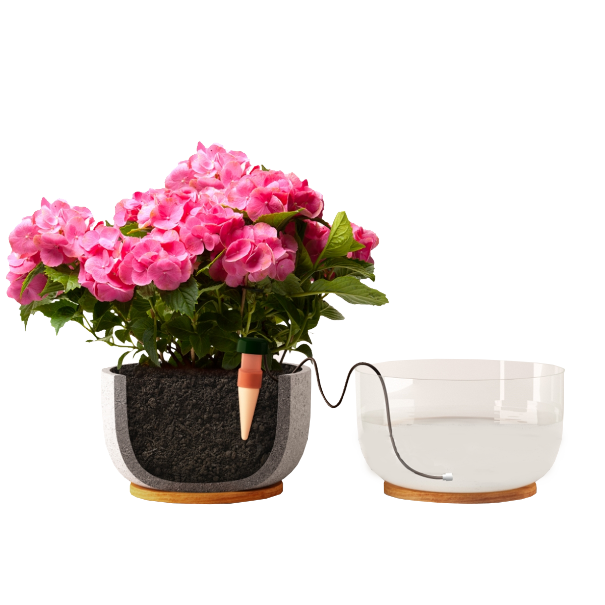 Extra Large Plants For larger plants you may use two Blumat Jr. watering stakes for proper absorption. In addition, you may raise your water container so that the water level is a few inches above the height of the green cap – this will increase the flow rate.