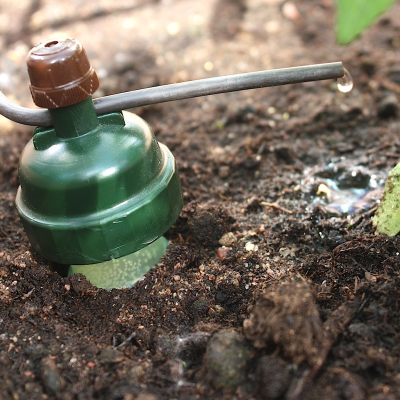 The Blumat-Tropf system relies on the benefits of drip irrigation. Overwatering a garden leaches nutrients from the ground and breeds microbes that contribute to root rot. In contrast, under-watering the plants leads to stress and widespread dieback.