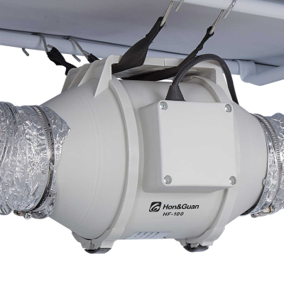 • Air Circulation: An ultra-quiet 4” inline fan that efficiently draws 158CFM.