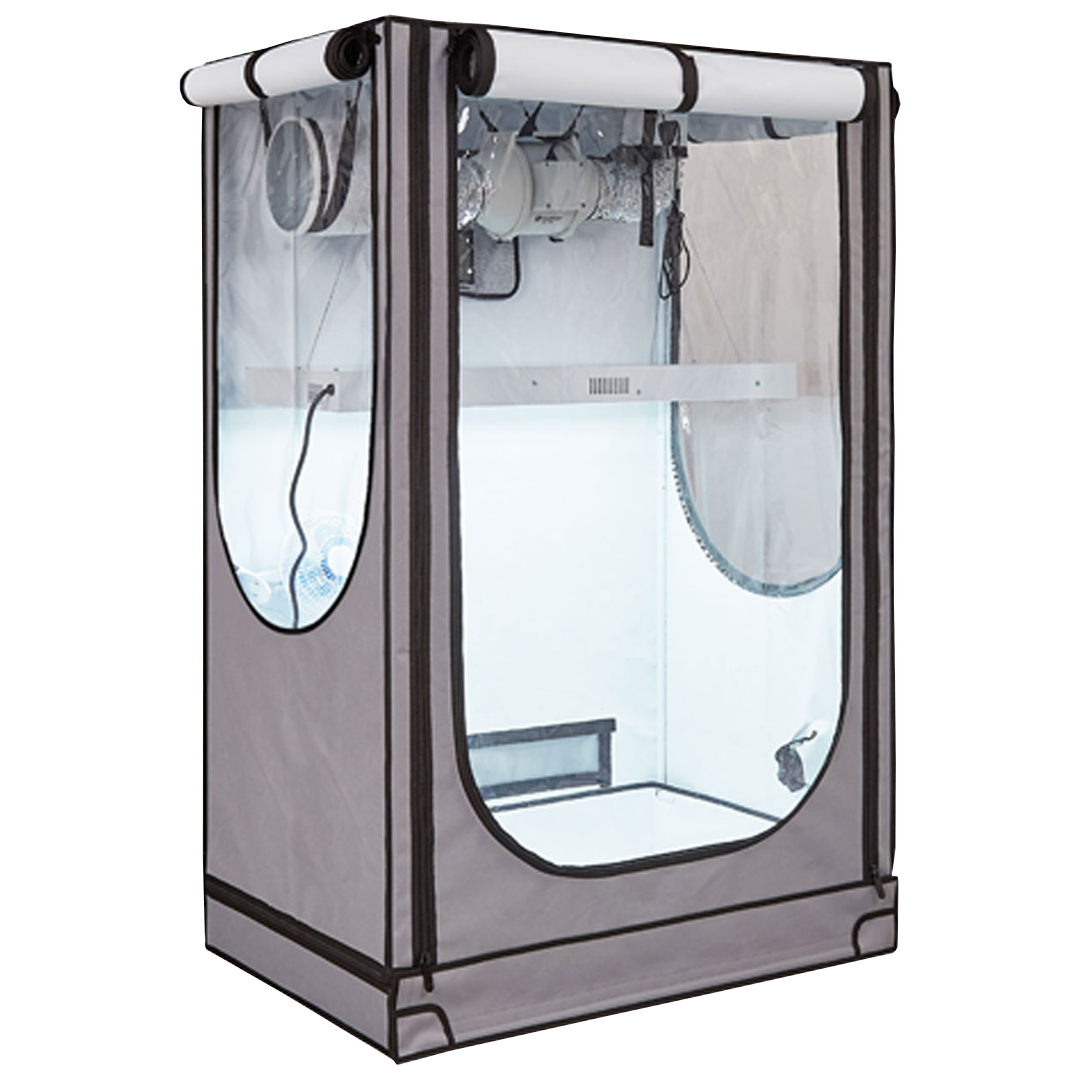 • Monitoring: A user-friendly humidity/temperature monitor, displaying in large numbers for easy viewing through the tent windows.
