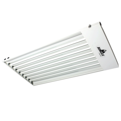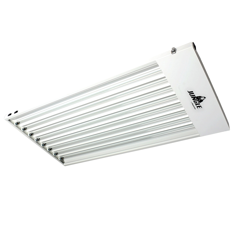The Jungle T5 LED fixtures are one of the most advanced and cost-efficient systems on the market. Jungle T5 LED 48 features a louvered design delivering excellent reflectivity and diffusion ideal for all growing situations including microgreen, seeding, cloning and the vegetative stage. These T5 LED lamps with internal driver made retrofitted for Jungle fixtures bypassing a need for ballasts offers optimal efficiency. The Jungle T5 LED fixture comes with full glass housing LEDs without aging, yellowing or bending. They are a lighter, more cost friendly version of the regular T5 fixtures.; 8′ Ground Power Cord; Direct-wire, 120-277 AC input; Instant-ON, Mercury-free; Daisy-chain Capability (up to 11 fixtures)*; Power Switches: 2; LED Lamps: 8 included; Energy Efficient (Uses 40% less energy than HPS lamps); Certification: UL1993, UL1598C;