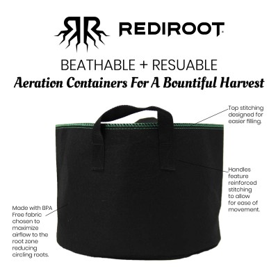 Crafted to optimize airflow around the root zone, RediRoot Breathable Fabric Pots present a lightweight yet sturdy fabric. This design ensures that plants and trees undergo effective air root pruning.